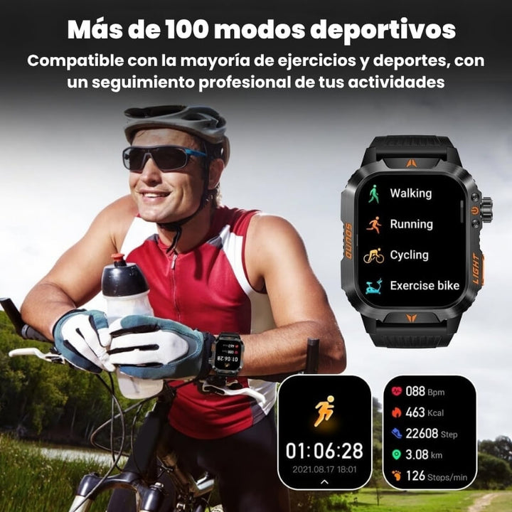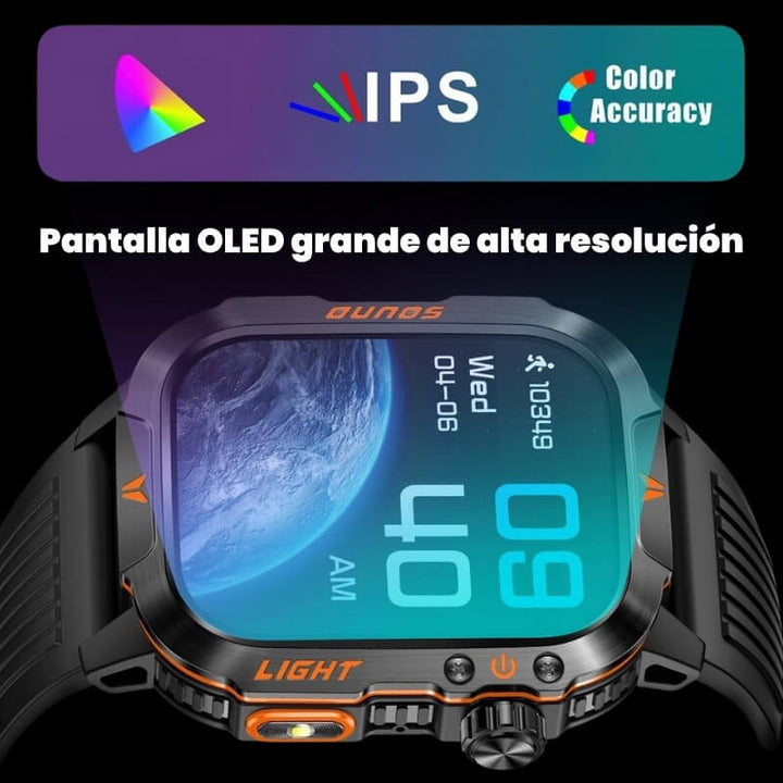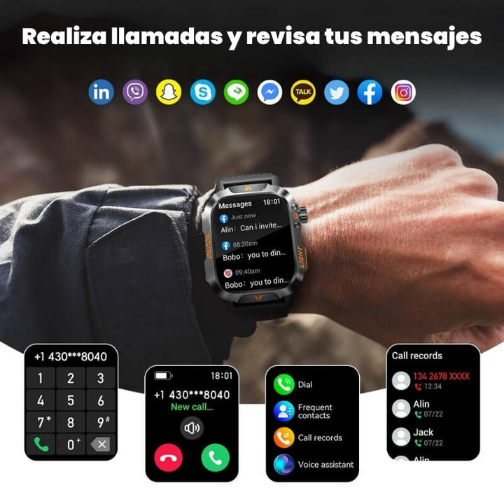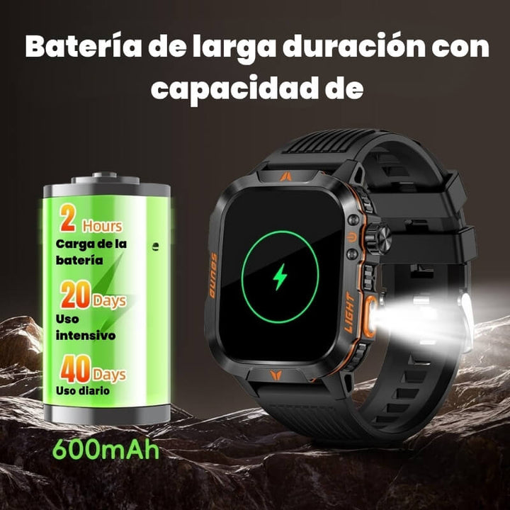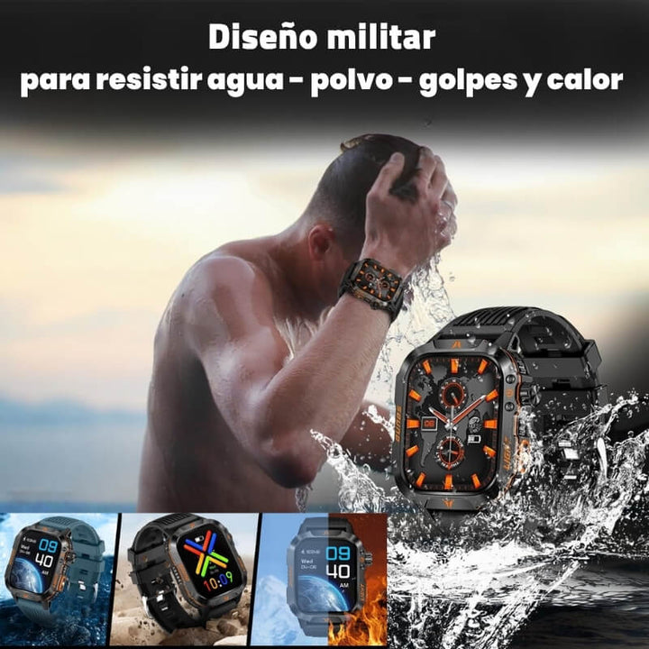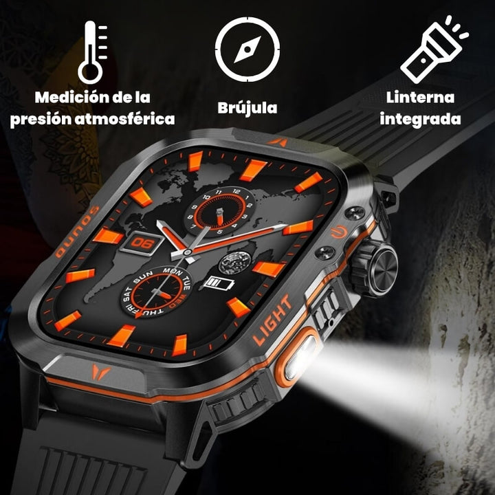 El reloj militar inteligente más potente – Llamadas, resistente al agua, linterna y monitoreo de salud